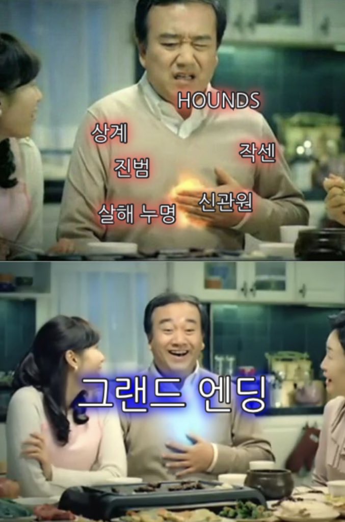 다른 엔딩에서는 핀 얘기가 많이 나오는데 이쪽에는 없다... 이쪽 엔딩은 엘트가 상계로 안 가고 하계에 남아있으면서 HOUNDS를 전부 잡아들여서..인듯.